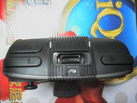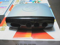 こんな感じで手に入れたのですが、左は普通にiQue Player、右がもしかすると珍しいコントローラの拡張です。iQue Playerはコントローラが1つしかないので1Pでしか遊べないのかと思いますが、この拡張を利用することで4Pまで遊べます。2つ目の写真が拡張の正面、これを見てわかりますようにコントローラの端子が3つあります。一番左の端子はAV端子のようなもので、iQue PlayerとTVの間にこの拡張機をセットします。3つ目の写真が裏面でAV端子の出力があります。4つ目が拡張のコントローラです。N64のコントローラとはかなり形が違います。DEMPAのカブトガニのようですね。色は光が反射してよくわかりませんが黒です。ちなみに本体はシルバーです。